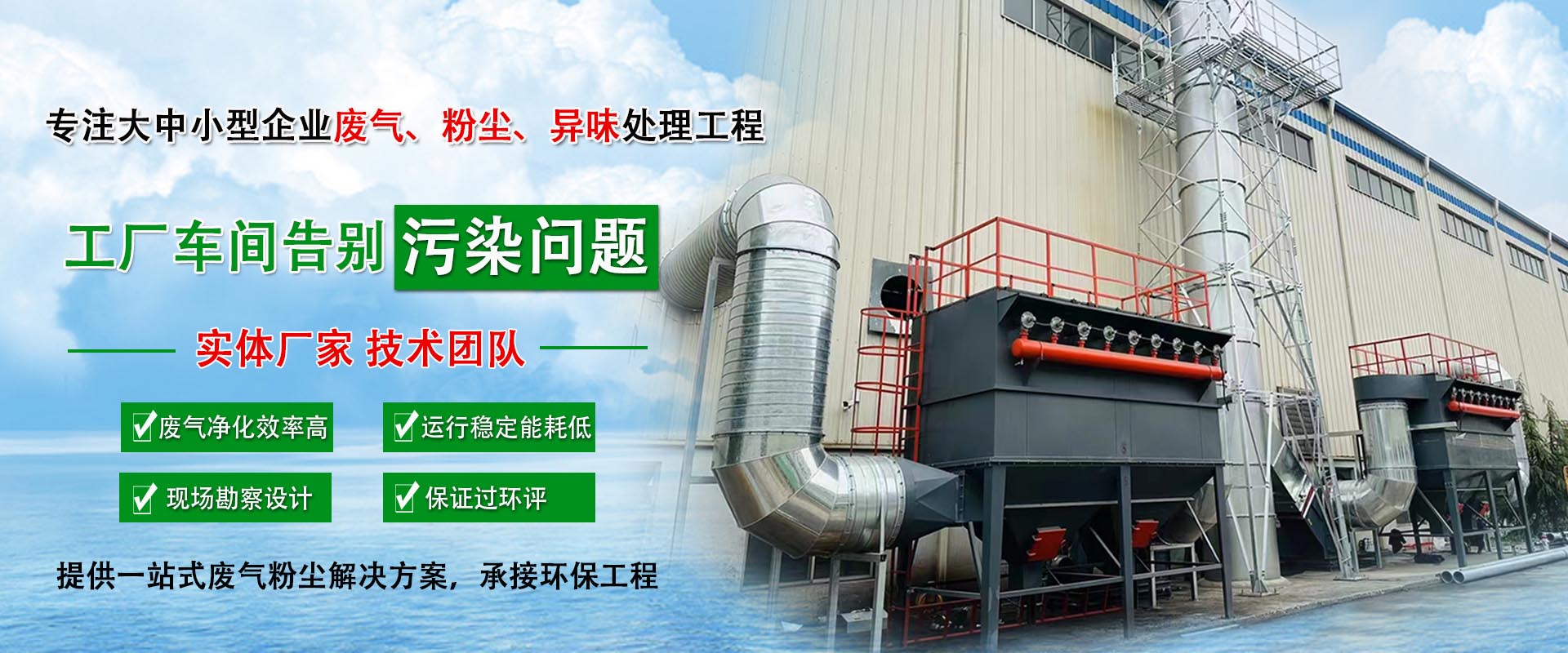• 廠房環(huán)境治理包括焊接煙塵處理,打磨拋光除塵處理,粉塵處理等。